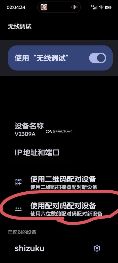 4.返回shizuku点击配对 再返回刚才设置里的无线调试页面 点击配对码配对设备(见图5图6)