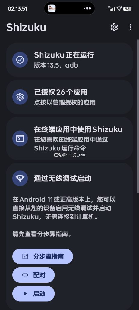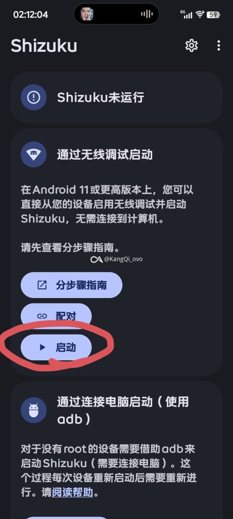 6.点击启动 等待几秒 就能启动shizuku服务了