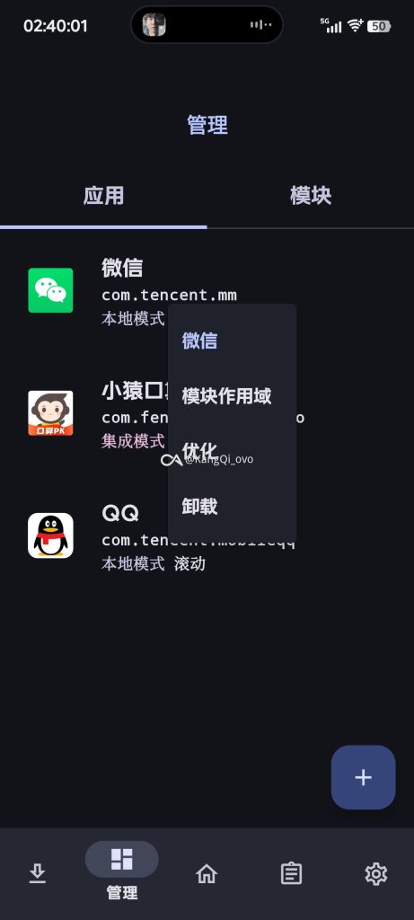⭕️集成模式:相当于将模块和app集成到一起 用着可能会很卡 但是方便分享给其他人用 建议实在要用这个模式少装点模块就好 而且此模式在修补好后不会依赖LSPatch这类管理器