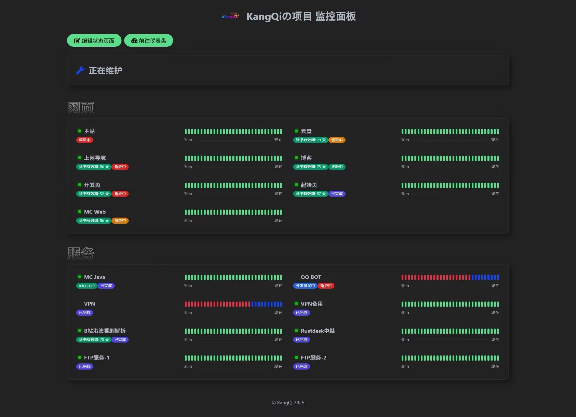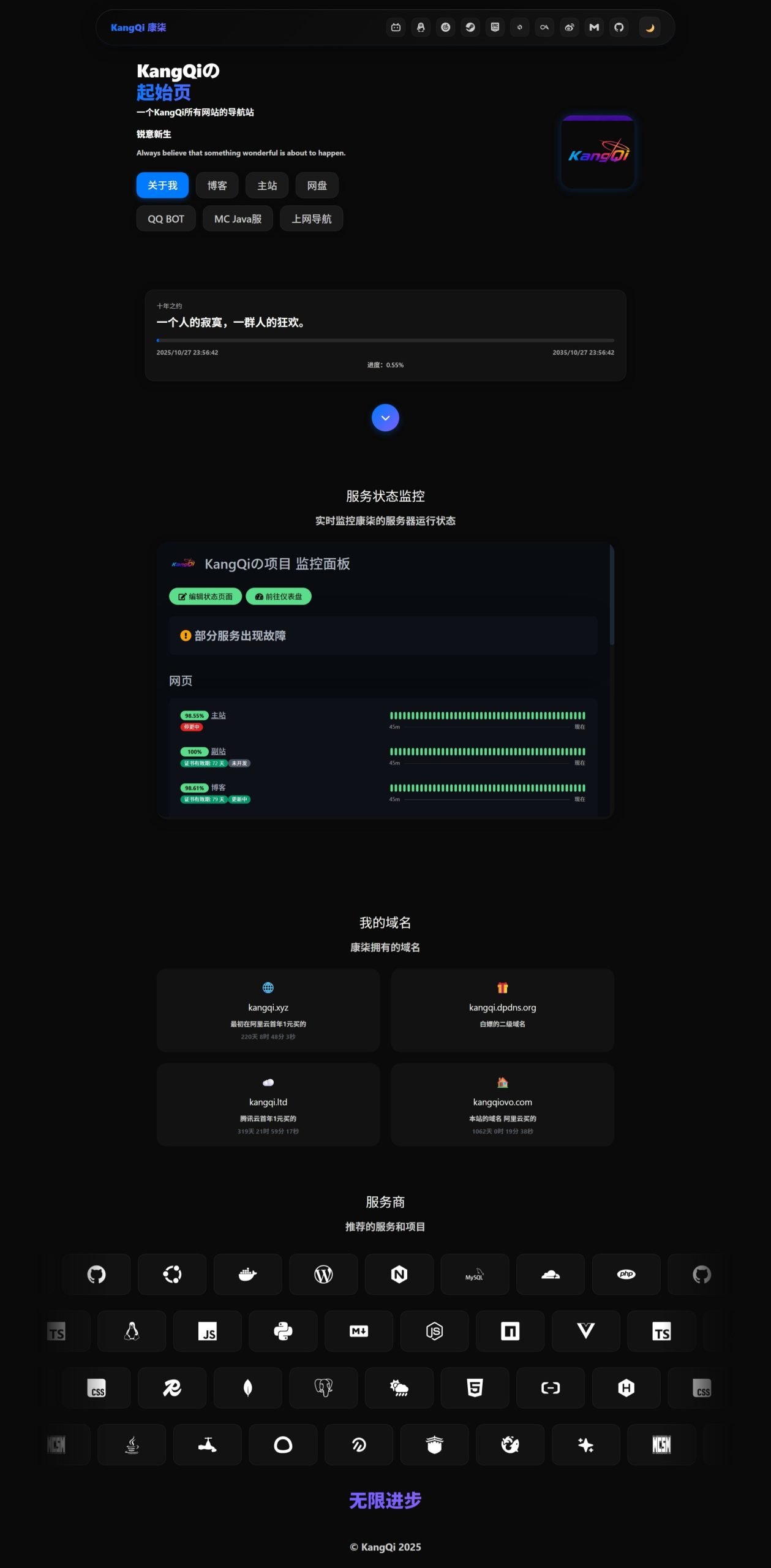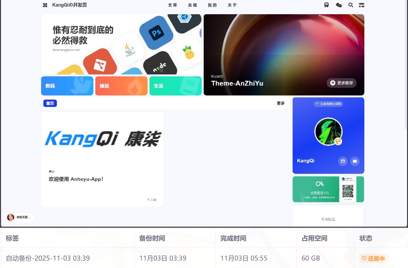 更新修改了一下KangQiの开发页 – 关于本站(静态网页可能需要加载一会儿)